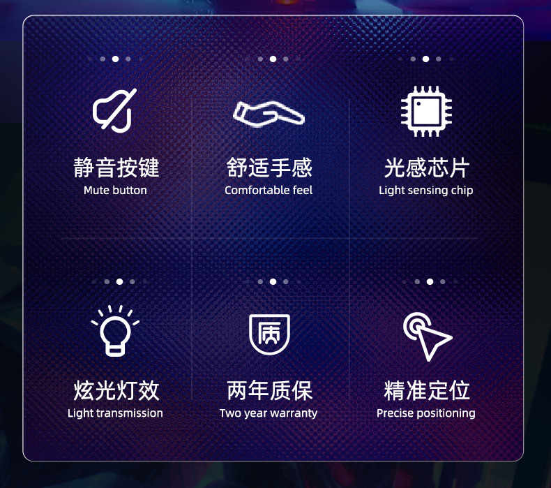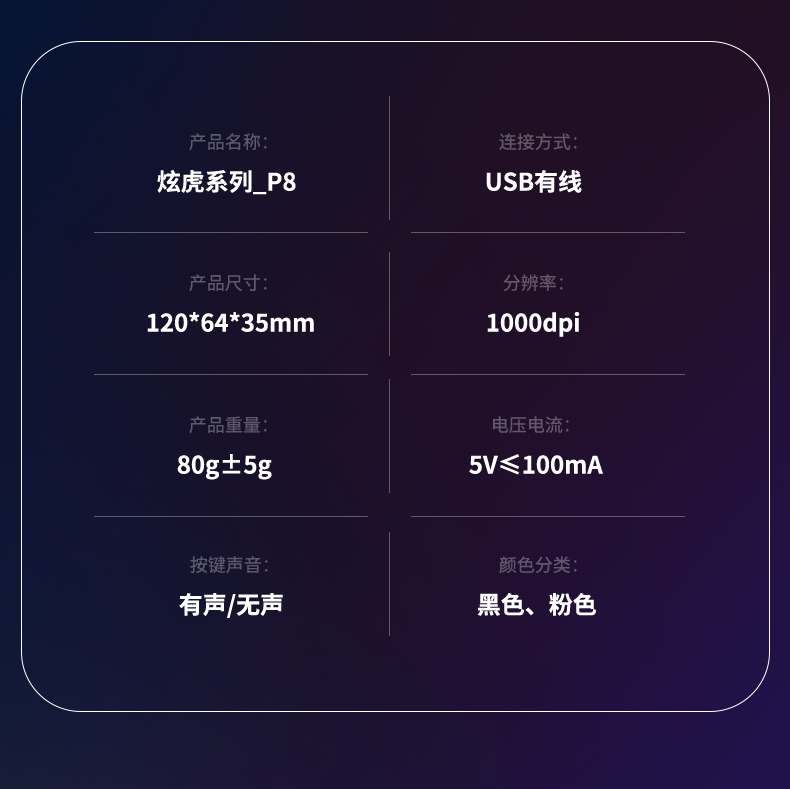 光学分辨率:1000dpi工作方式:光电颜色分类:【经典版】神秘黑-7色炫彩光效-有声按键-舒适握感 【经典版】少女粉-7色炫彩光效-有声按键-舒适握感 【升级裂纹版】神秘黑-静音按键-7色炫彩灯效-舒适握感-推荐 【升级裂纹版】少女粉-静音按键-7色炫彩灯效-舒适握感-推荐 【升级蜂窝版】神秘黑-静音按键-7色炫彩灯效-舒适握感-推荐 【升级蜂窝版】少女粉-静音按键-7色炫彩灯效-舒适握感-推荐 【升级闪电版】神秘黑-静音按键-7色炫彩灯效-舒适握感-推荐 【升级闪电版】少女粉-静音按键-7色炫彩灯效-舒适握感-推荐