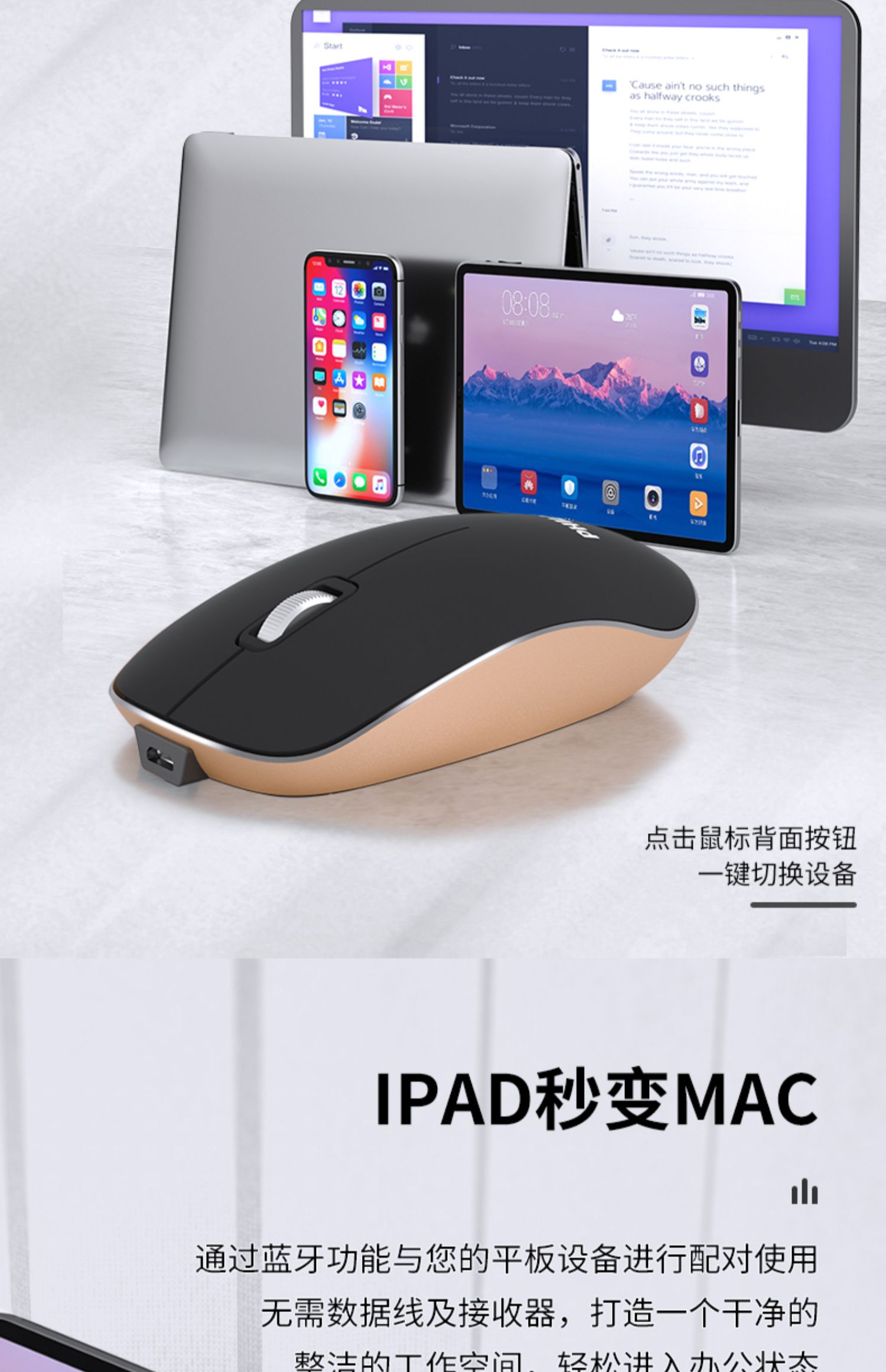 • 蓝牙无线 鼠标女生办公静音无声充电双模5.0惠普联想戴尔电脑鼠标